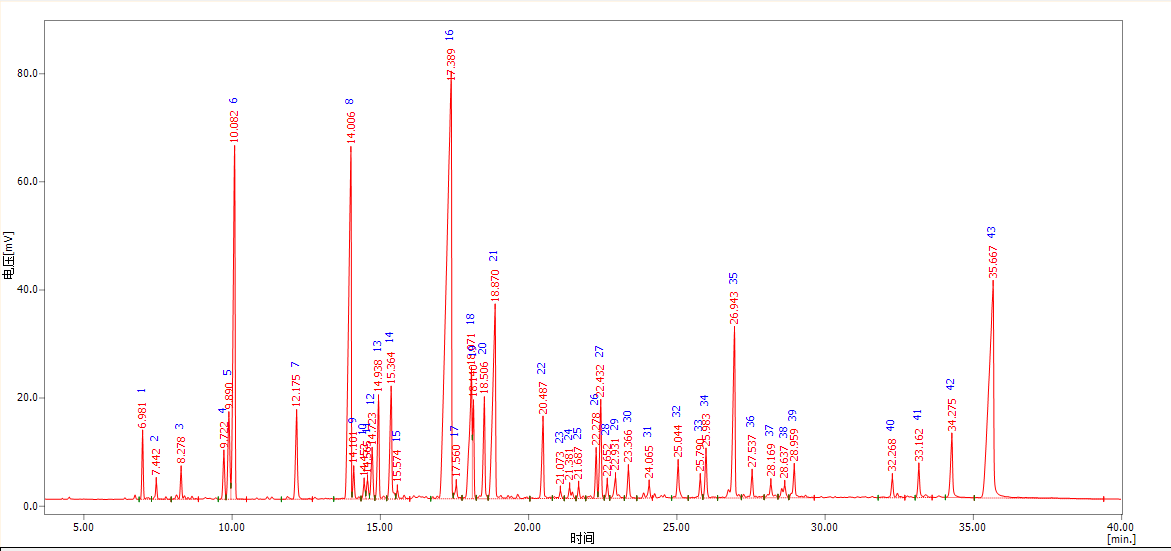 圖2:鮮取工藝藿香揮發(fā)油組分