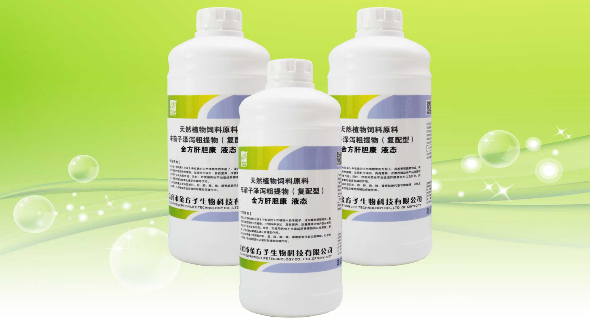 金方肝膽康,由精選車前子、澤瀉等天然植物粗提物組成,能起到保肝護腎、護肝利膽等作用,有助于營養(yǎng)和改善品質風味等作用。同時對因藥物不當所致肝脾腎損傷,以及肝變、肝裂、肝膽代謝功能紊亂諸證有輔助作用。